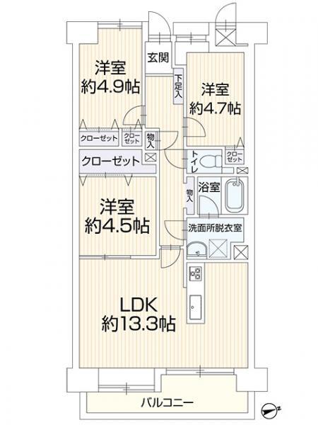 | 販売戸数/総戸数 | 1戸/92戸 | 主要採光面 | 東 | ||