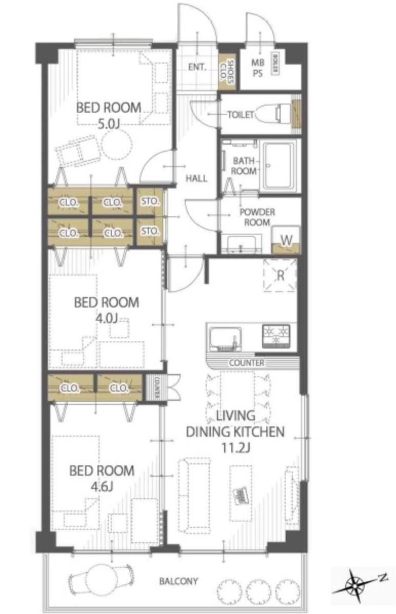 販売戸数/総戸数 | 1戸/42戸 | 主要採光面 | 東 | ||