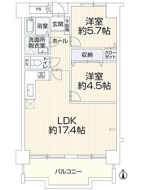 | 販売戸数/総戸数 | 1戸/55戸 | 主要採光面 | 南 | ||