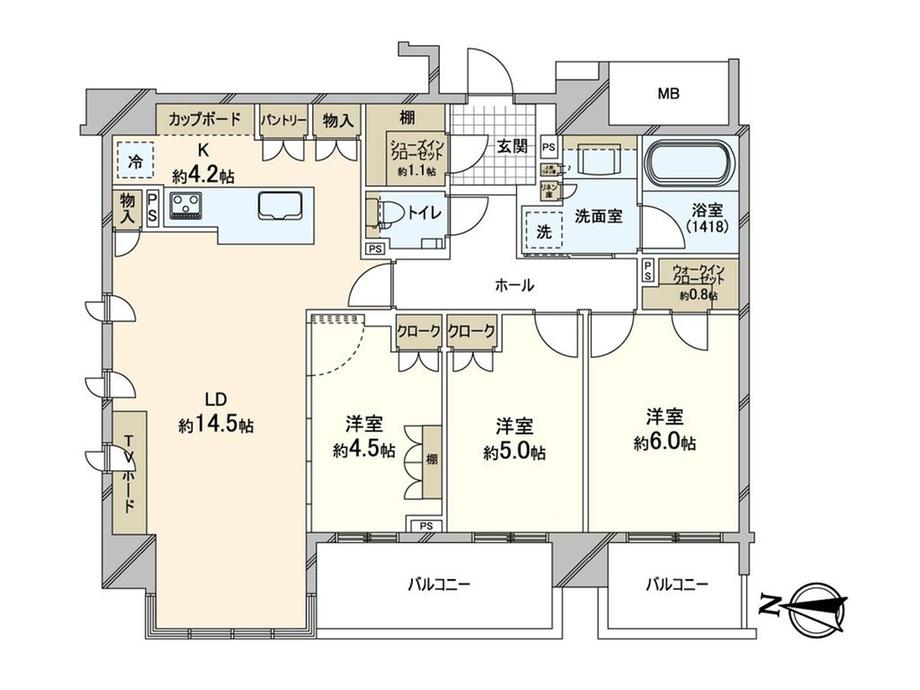 販売戸数/総戸数 | 1戸/59戸 | 主要採光面 | 南西 | ||