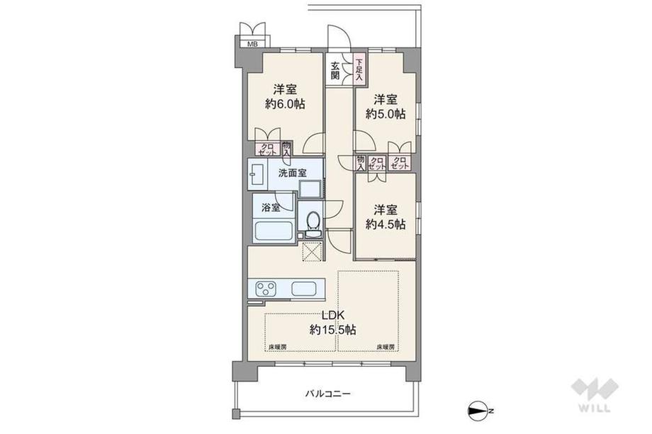 | 販売戸数/総戸数 | 1戸/125戸 | 主要採光面 | 東 | ||