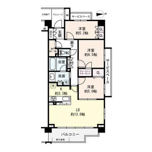 | バルコニー面積 | 9.64㎡ | 土地権利 | 所有権 | ||