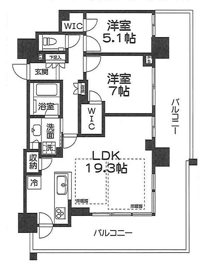 | 設備・サービス | 床暖房、バルコニー、浴室暖房、ウォークインクローゼット、下水、公営水道、室内洗濯機置場、浴室乾燥機、温水洗浄便座、専用トイレ、専用バス、追焚機能、パントリー、ごみ出し24時間OK、エレベーター | ||||