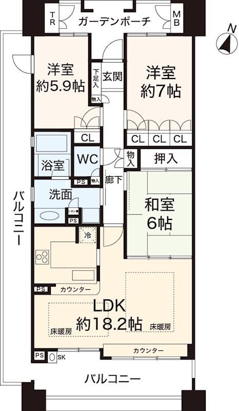 | 販売戸数/総戸数 | 1戸/119戸 | 主要採光面 | 南 | ||