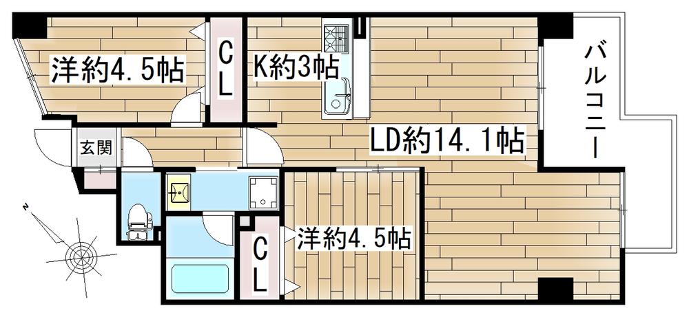 | 販売戸数/総戸数 | 1戸/66戸 | 主要採光面 | 南東 | ||