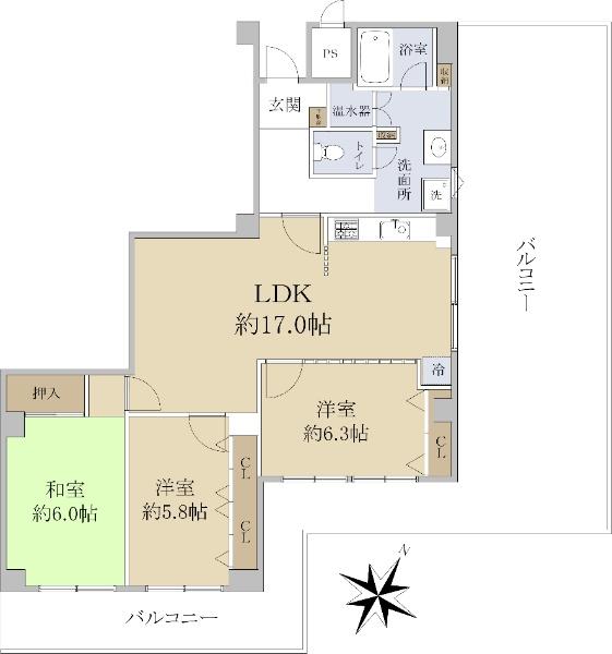 | 販売戸数/総戸数 | 1戸/17戸 | 主要採光面 | 南東 | ||