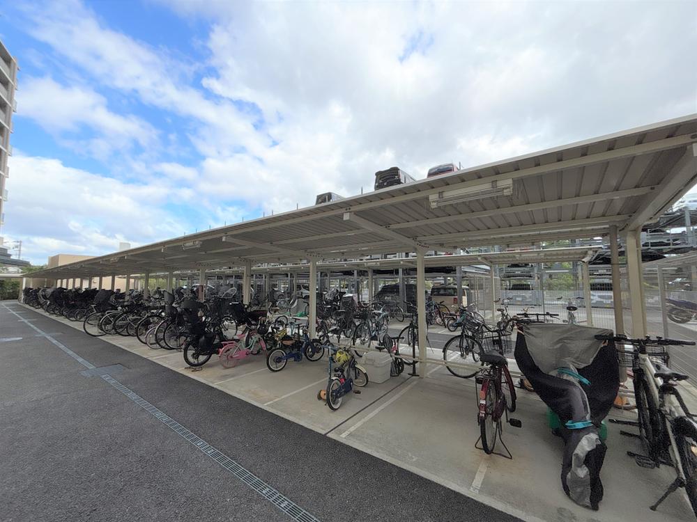 【駐輪場】マンション敷地内にある駐輪場です。屋根付きのため、雨から自転車を守れます。使用料などの詳細はお問い合わせください。