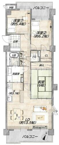 | 主要採光面 | 南 | 修繕積立金 | 14,500円 | ||