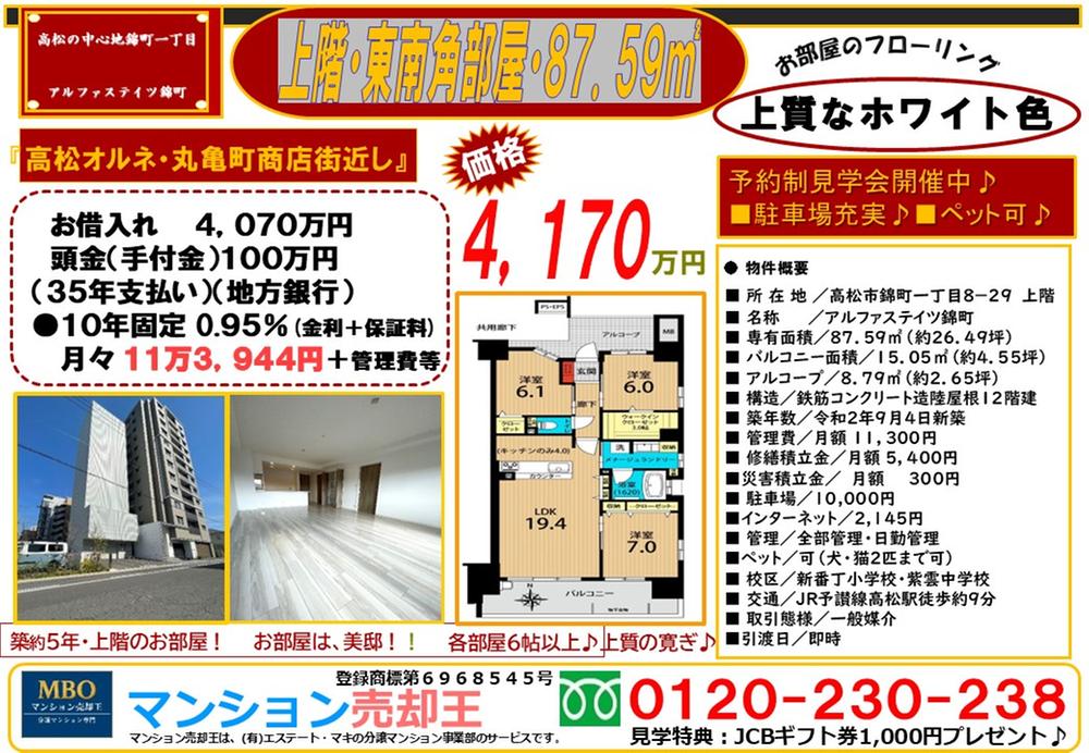 JR予讃線「高松」歩9分 高松琴平電鉄琴平線「高松築港」歩11分 高松琴平電鉄琴平線「片原町」歩17分 | ||||