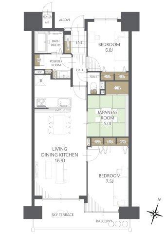 | 販売戸数/総戸数 | 1戸/52戸 | 主要採光面 | 南東 | ||