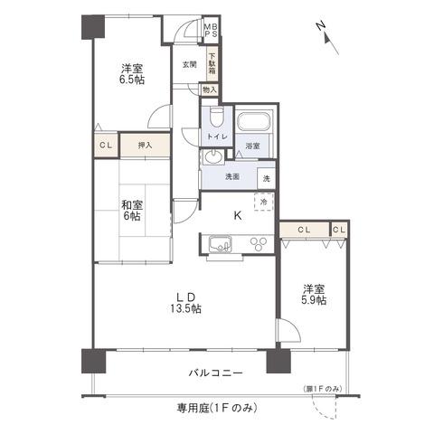 | 販売戸数/総戸数 | 1戸/63戸 | 主要採光面 | 南 | ||