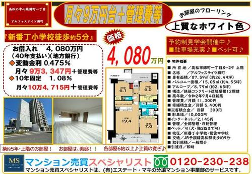 | 備考 | 管理形態/管理員の勤務形態:全部委託/日勤・ペット条件:小型犬可/猫可・管理組合:あり・上部のお部屋は、ほぼ使用感がなく綺麗な室内です♪近隣賃貸のお部屋と比べても、お安く月々返済可です♪新番町小学校徒歩5分、高松駅&高松三越徒歩10分以内の好立地分譲マンションです♪・バイク置場:有(1,000円/月)・駐輪場:有(無料) | ||||