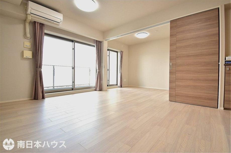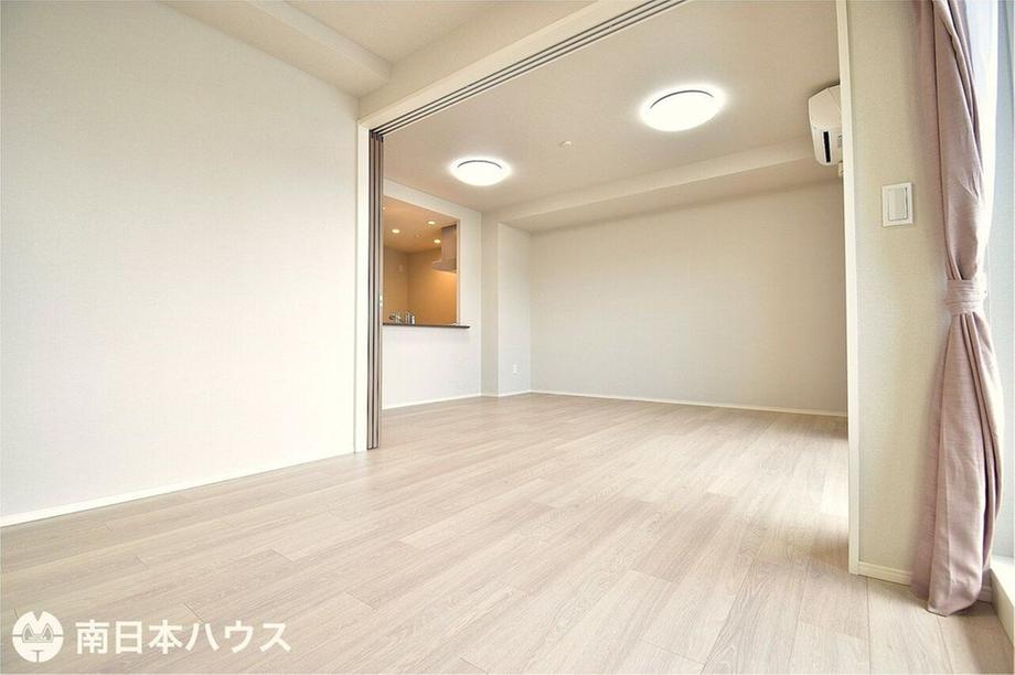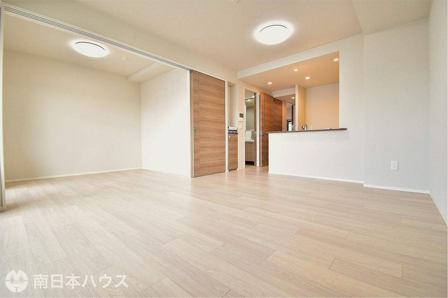 【リビング】13.8帖のリビングです!4.3帖の洋室との扉には段差がなくフラットに使用できます♪