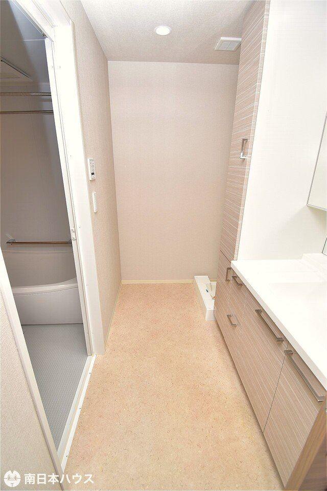 【洗濯機置場】洗面台横のランドリーコーナーもゆったり♪ドラム式も置ける余裕があります!