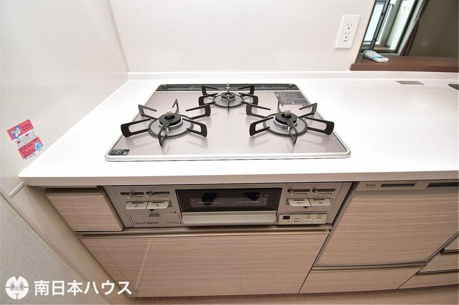 【キッチン】カウンターキッチン!3口のコンロにグリル付き!浄水機能付き水栓を備えています♪