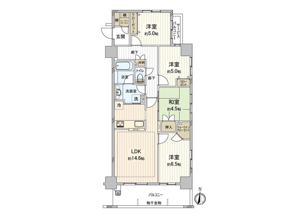 | 販売戸数/総戸数 | 1戸/64戸 | 主要採光面 | 南 | ||