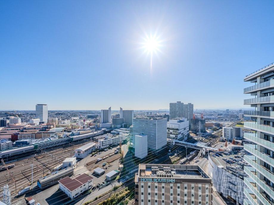 田園しかなかった場所に一夜城のごとくあれよあれよと駅周辺の開発が進んだ場所なので、周囲の自然環境は抜群です。その証拠に市役所が田畑のど真ん中に。笑