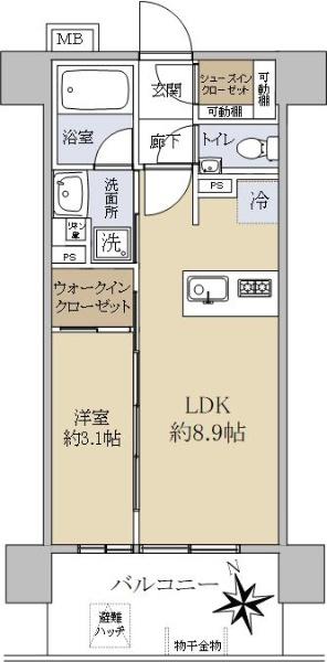 | 販売戸数/総戸数 | 1戸/48戸 | 主要採光面 | 南西 | ||