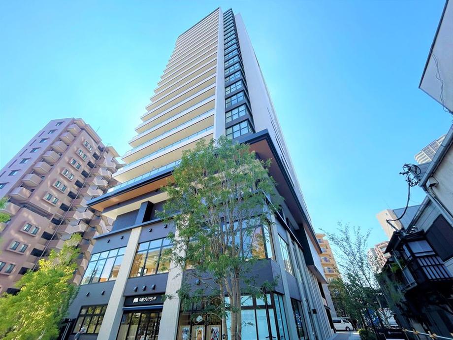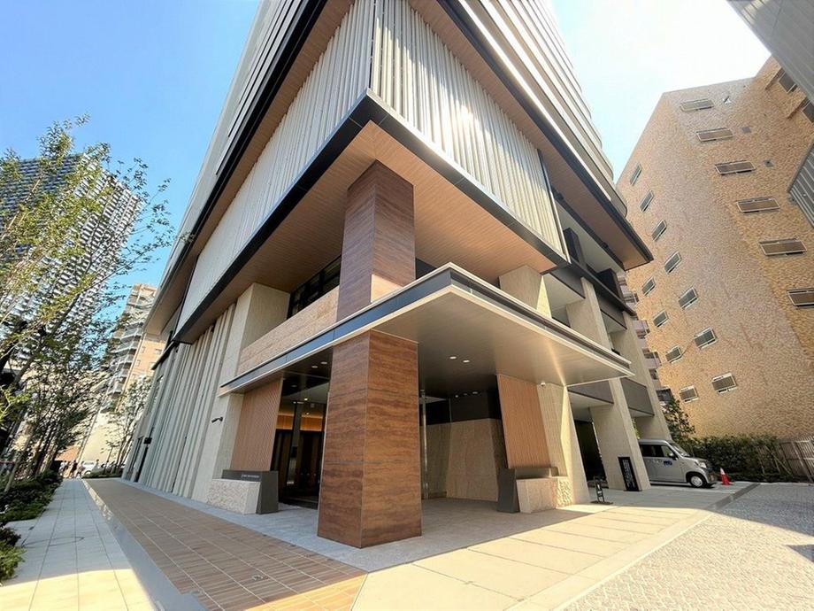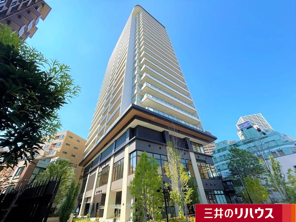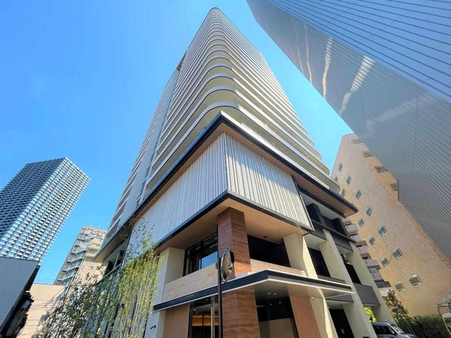 【現地外観写真】 総戸数160戸のマンション。オーナーズラウンジ・個室ワークスペース・屋上テラス(ルーフトップラウンジ)などの共用施設が設けられています(一部有償・規約有)。