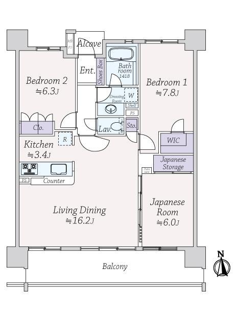 | 販売戸数/総戸数 | 1戸/105戸 | 主要採光面 | 南 | ||