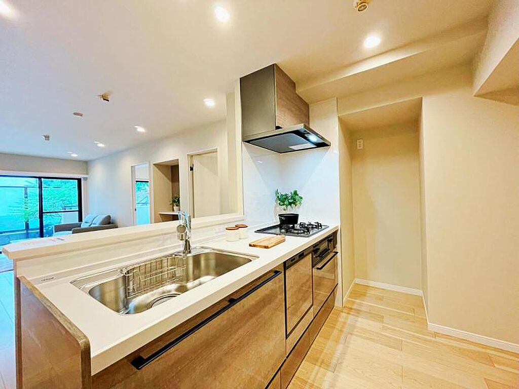 | キッチン | カウンターキッチン、コンロ三口以上、コンロ二口以上、ガスコンロ設置済、ガスコンロ、コンロ三口、システムキッチン、給湯、食器洗い乾燥機 | ||||