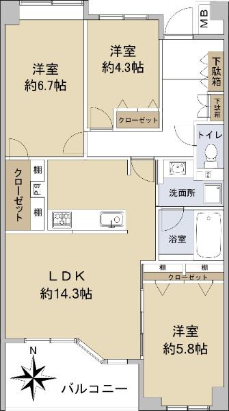| 販売戸数/総戸数 | 1戸/53戸 | 主要採光面 | 南 | ||
