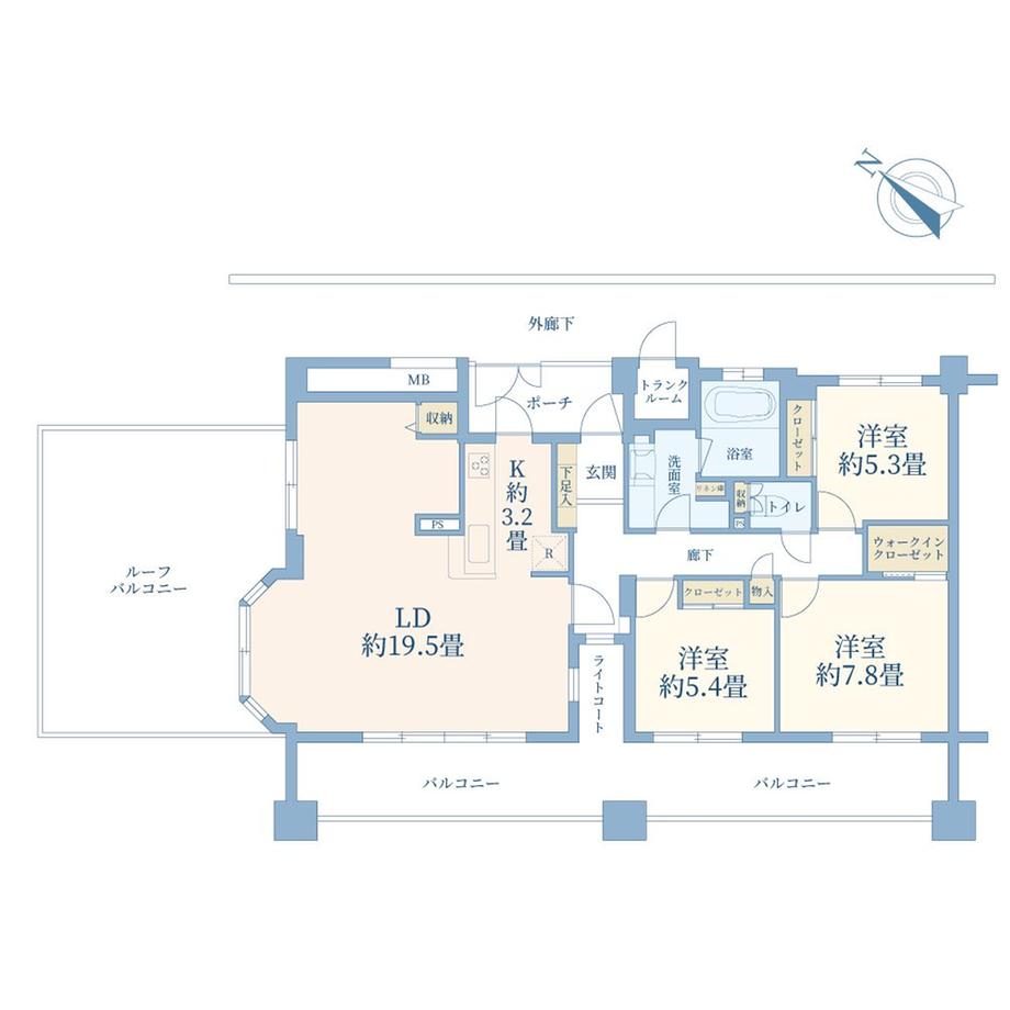 | その他面積 | バルコニー面積:24.66㎡、ルーフバルコニー:30.08㎡(使用料910円/月) | 土地権利 | 所有権 | ||