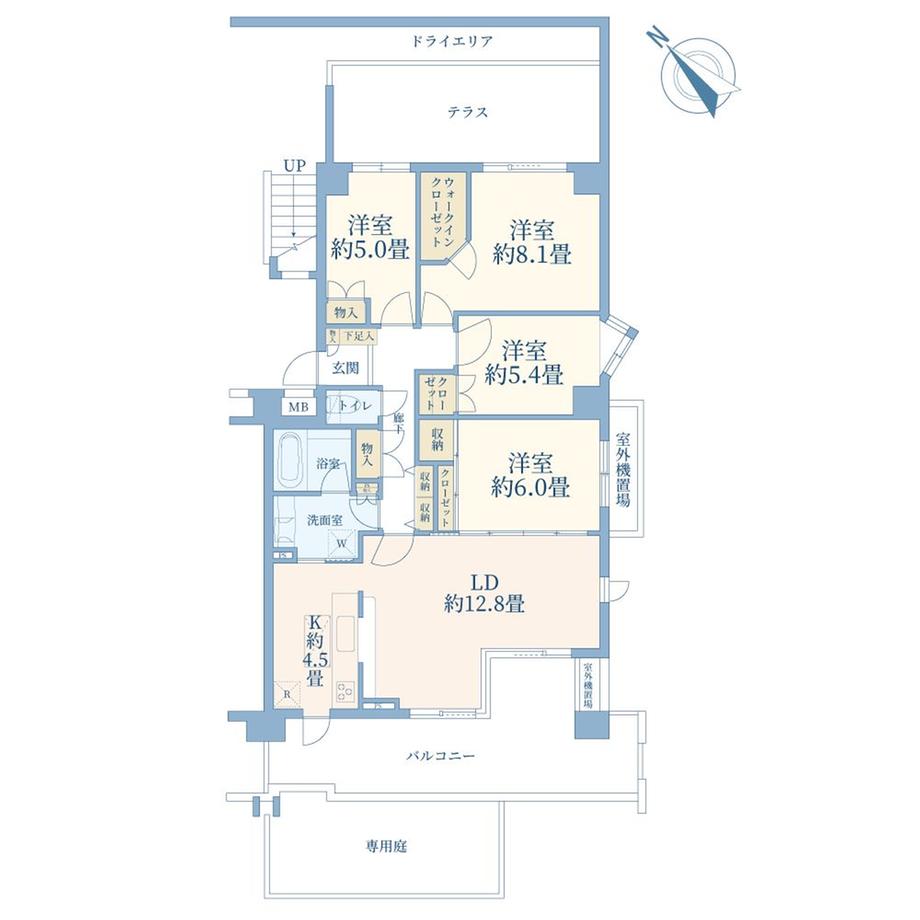 | その他面積 | バルコニー面積:20.32㎡、専用庭:13.14㎡(使用料300円/月)、テラス:15.96㎡(使用料無) | 土地権利 | 所有権 | ||