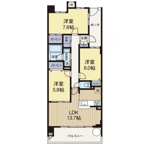 | 販売戸数/総戸数 | 1戸/64戸 | 主要採光面 | 南 | ||