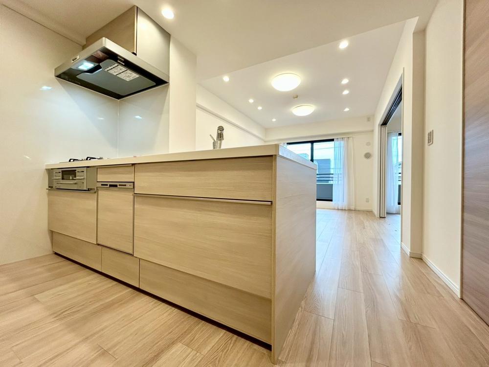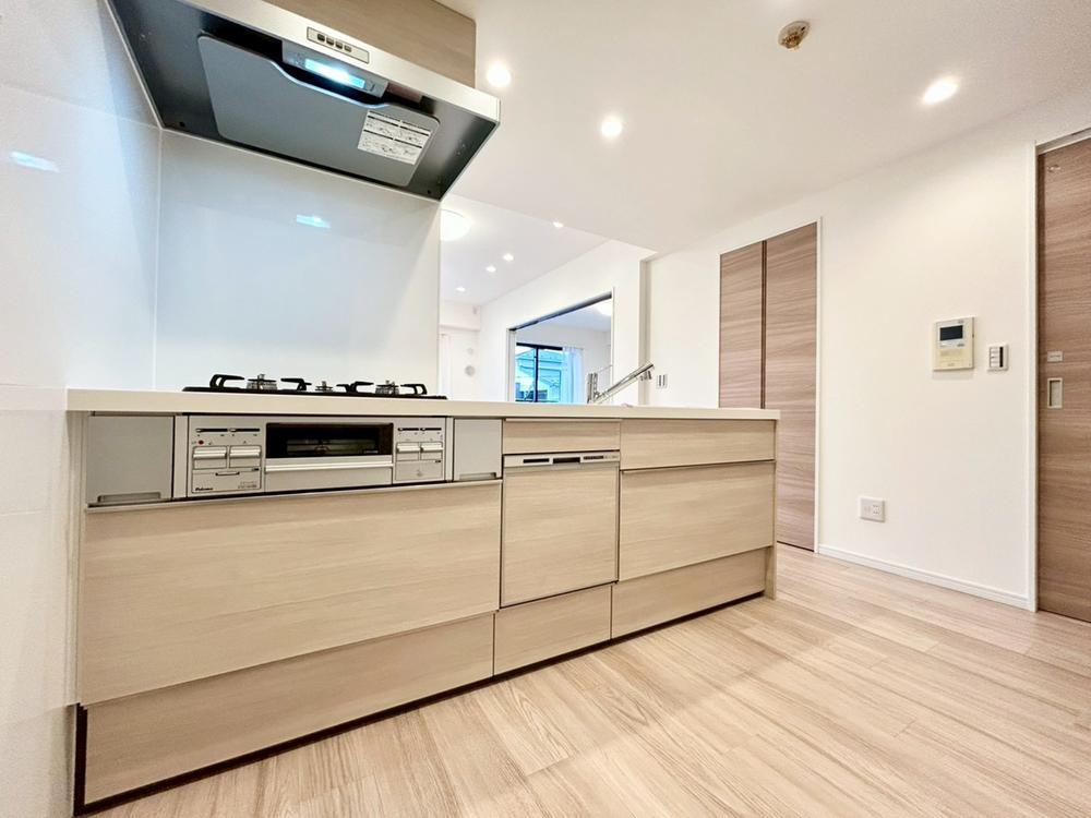 キッチン上部に吊戸棚が無いことで、キッチンとダイニング、リビング空間が分断されることを防ぎます。是非一度、この一体感と開放感が溢れる部屋をご覧になってください。キッチン下部には収納スペースが豊富です♪