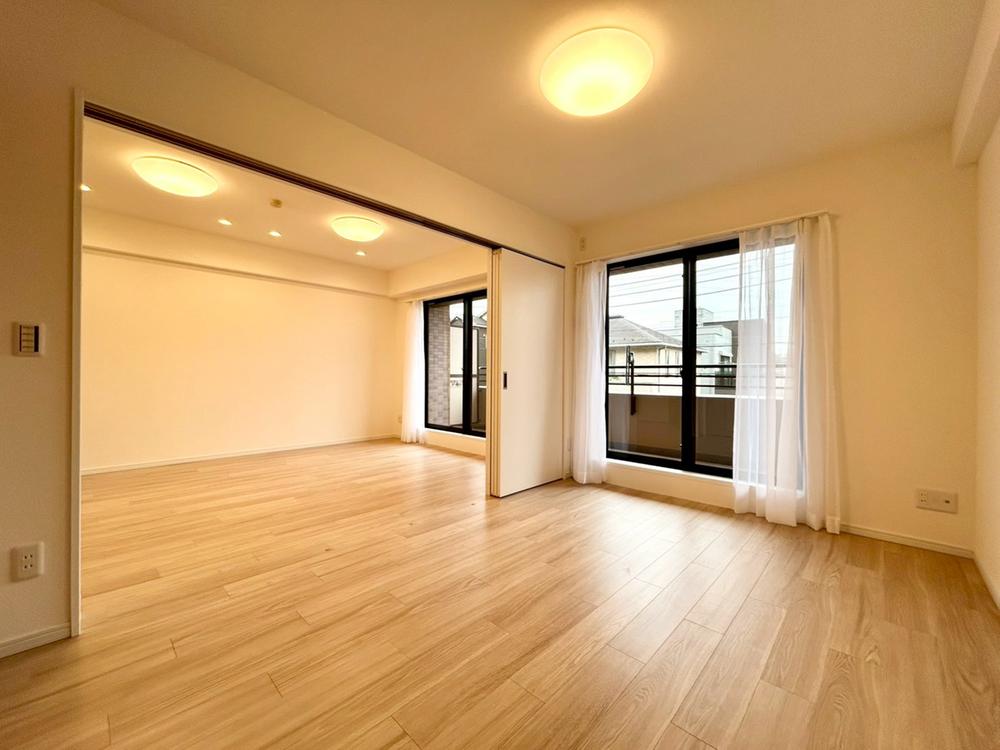 リビング側の洋室は可動式間仕切りを閉じれば個室としてご利用可能です。お子様が小さなときは間仕切りをあけてプレイルームとしてご利用いただくことでリビングからも目が届き安心して遊ばせることが出来ます。
