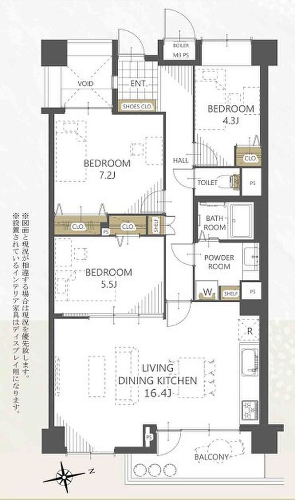 | 建物構造 | その他 | 間取り詳細(帖) | 洋室 7.2帖洋室 5.5帖洋室 4.3帖リビングダイニングキッチン 16.4帖 | ||