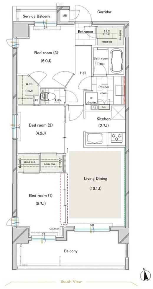 | 販売戸数/総戸数 | 1戸/32戸 | 主要採光面 | 南 | ||