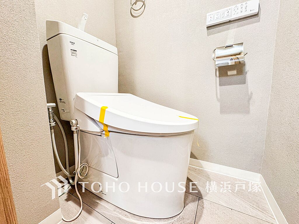 「Toilet」いつまでも清潔な空間であって頂けますように、目に留まるだけではなく、汚れをふき取り易いフロアと壁紙をチョイス致しました。毎日の生活を快適にお過ごし頂けますよう、落ち着いた雰囲気です。