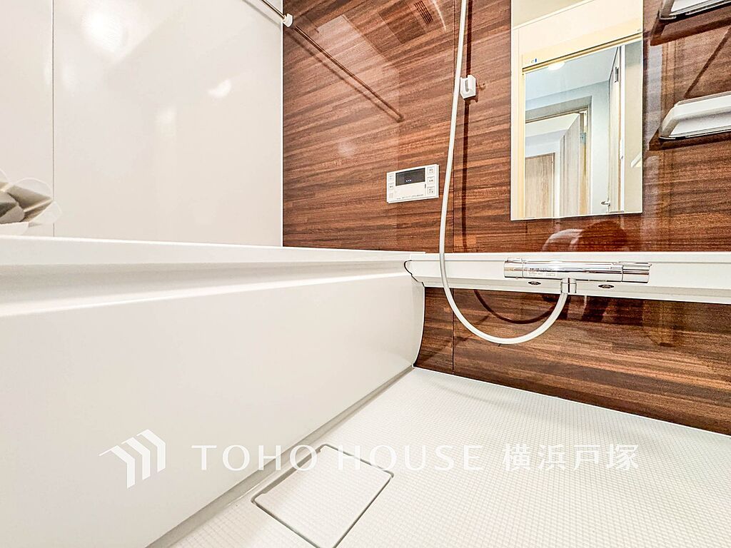 「Bathroom」1日の疲れを癒すバスルームは、心地よいリラックスを叶える清潔感溢れる美しい空間です。心からゆったりと寛いでいただけるよう、ゆとりのスペースを確保してます。