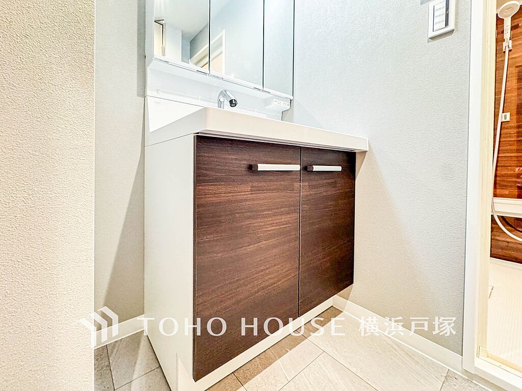 「Powder room」落ち着いた空間を演出するカラーと、ゆったり落ち着いてお使い頂ける広さが魅力のパウダールーム。居室からも独立しており、プライベート空間を保ちます。