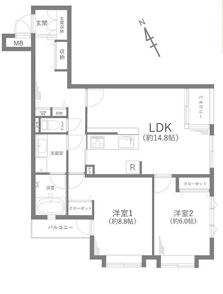| 建物構造 | RC(鉄筋コンクリート) | 間取り詳細(帖) | リビングダイニングキッチン 14.8帖洋室 8.8帖洋室 6帖 | ||