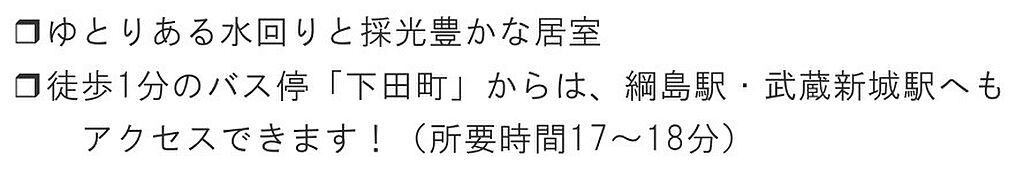 東急東横線 日吉駅 バス8分 下田小学校下車 徒歩4分 横浜市営地下鉄グリーンライン 日吉本町駅 徒歩19分 | ||||