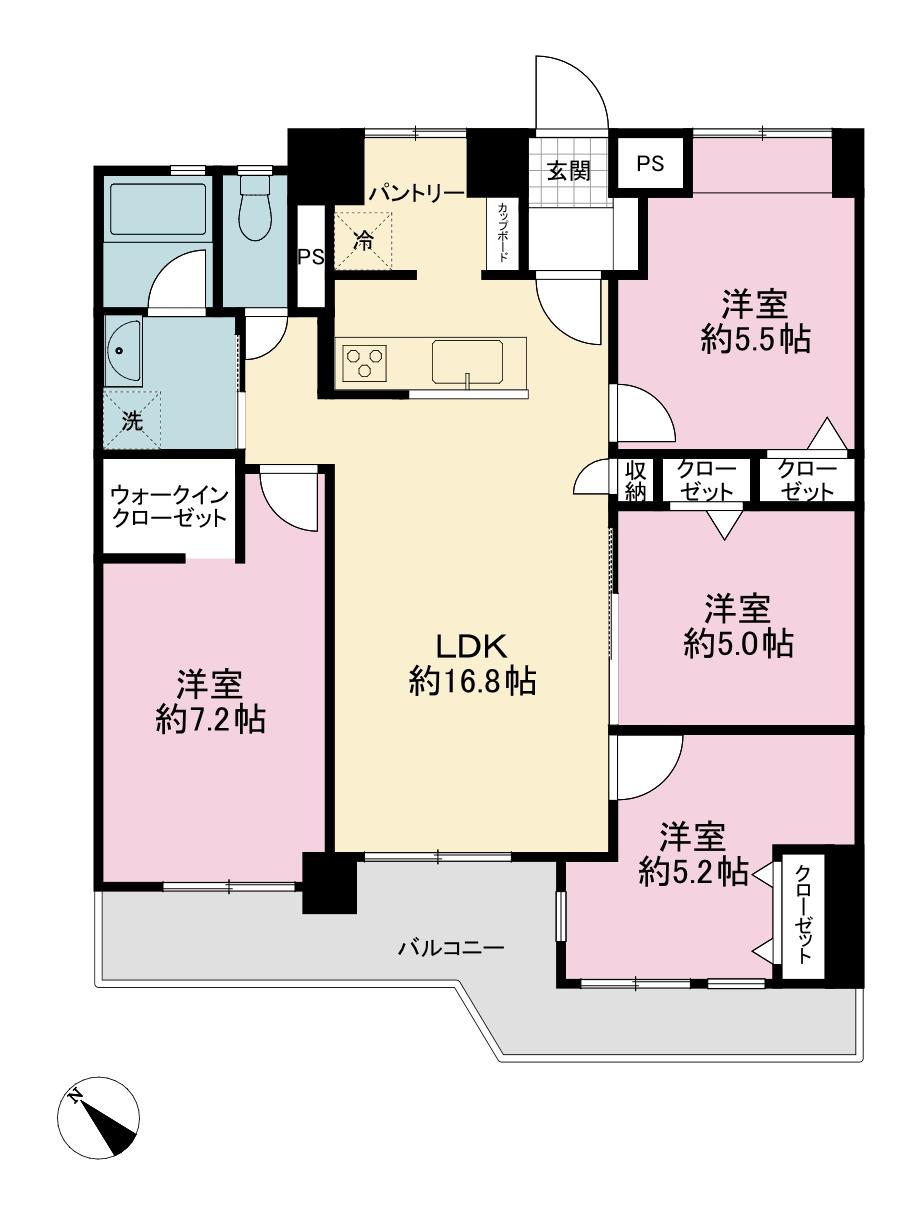 | 販売戸数/総戸数 | 1戸/80戸 | 主要採光面 | 南西 | ||