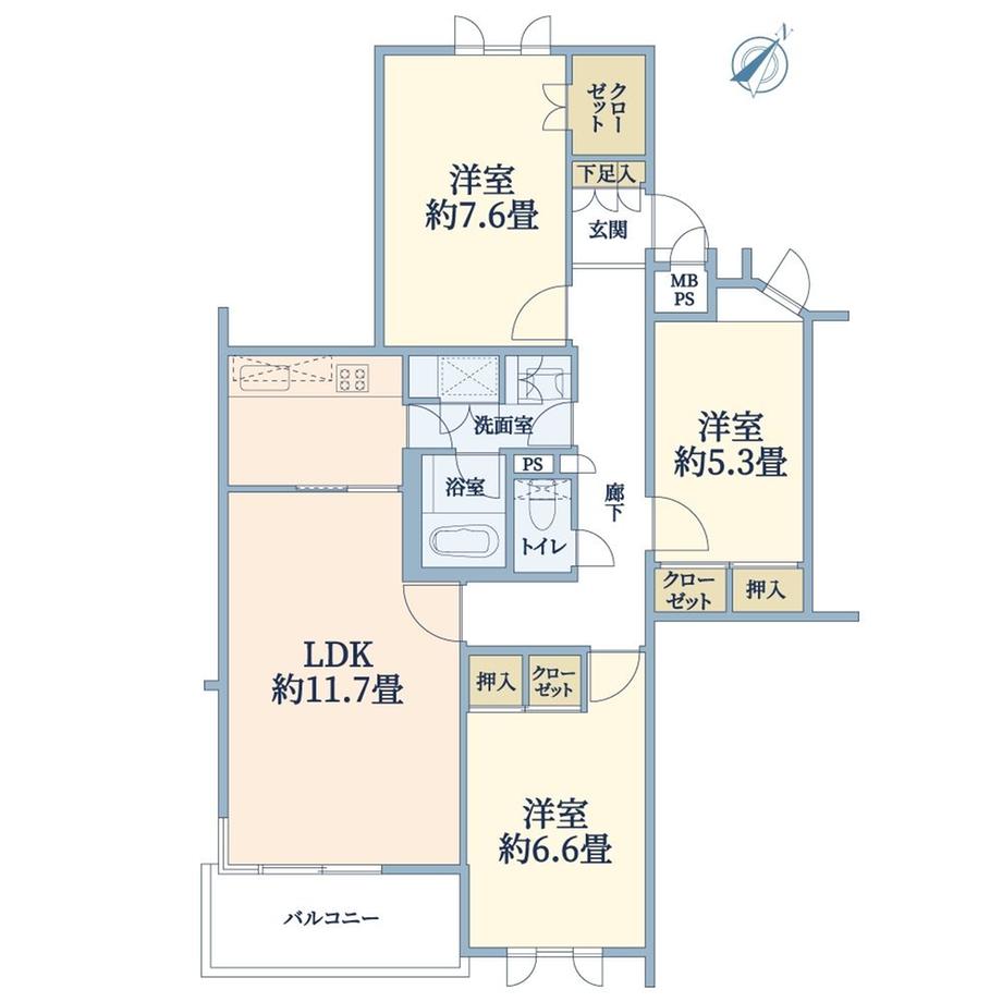 販売戸数/総戸数 | 1戸/75戸 | 主要採光面 | 南 | ||
