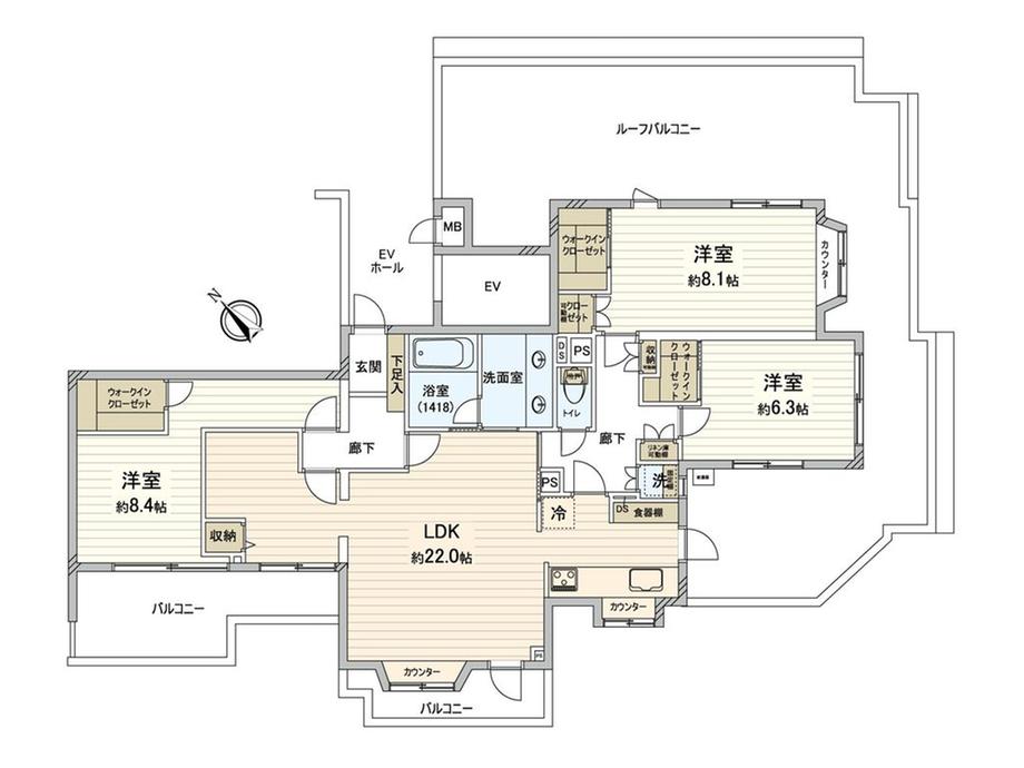 | 販売戸数/総戸数 | 1戸/23戸 | 主要採光面 | 南西 | ||