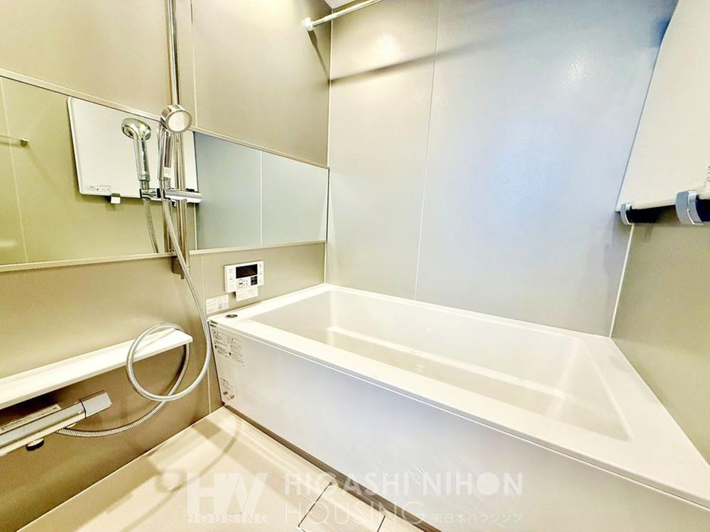 一日の疲れを癒すバスルーム。程よい大きさの浴槽で、シンプルですっきりとしたバス空間になります。ゆったりお湯につかりながら、心も体もリラックスできます。ご家族みんながホッと一息つける場所です。
