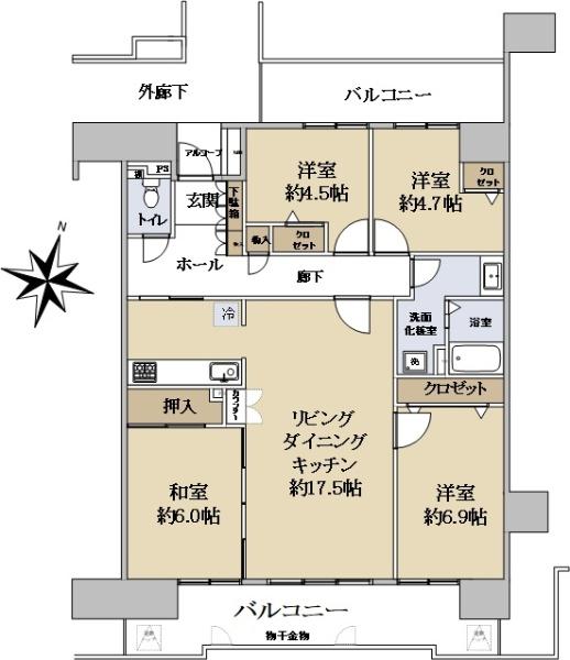 | その他面積 | バルコニー面積:22.96㎡ | 土地権利 | 所有権 | ||