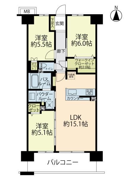 | 販売戸数/総戸数 | 1戸/89戸 | 主要採光面 | 南 | ||