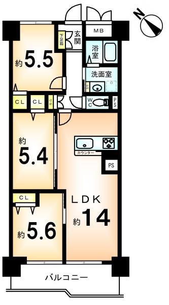 販売戸数/総戸数 | 1戸/172戸 | 主要採光面 | 南西 | ||