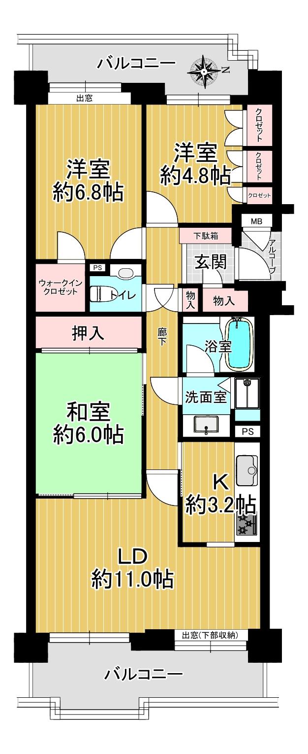| 販売戸数/総戸数 | 1戸/106戸 | 主要採光面 | 東 | ||