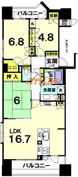 | 販売戸数/総戸数 | 1戸/96戸 | 主要採光面 | 東 | ||