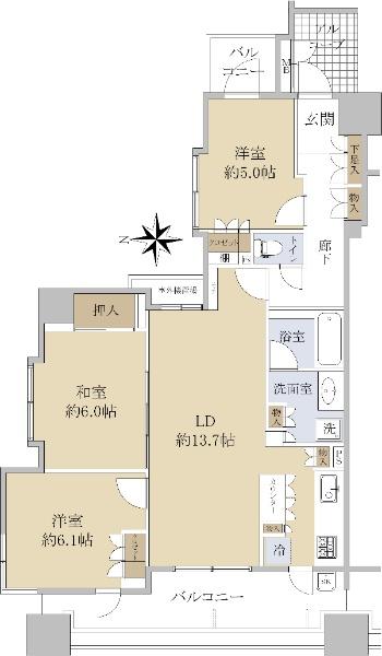 | 販売戸数/総戸数 | 1戸/67戸 | 主要採光面 | 西 | ||