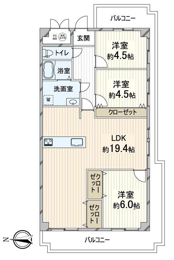 | 販売戸数/総戸数 | 1戸/64戸 | 主要採光面 | 西 | ||