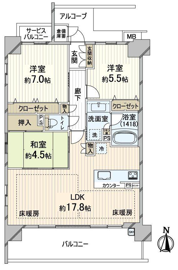 | 販売戸数/総戸数 | 1戸/54戸 | 主要採光面 | 南 | ||